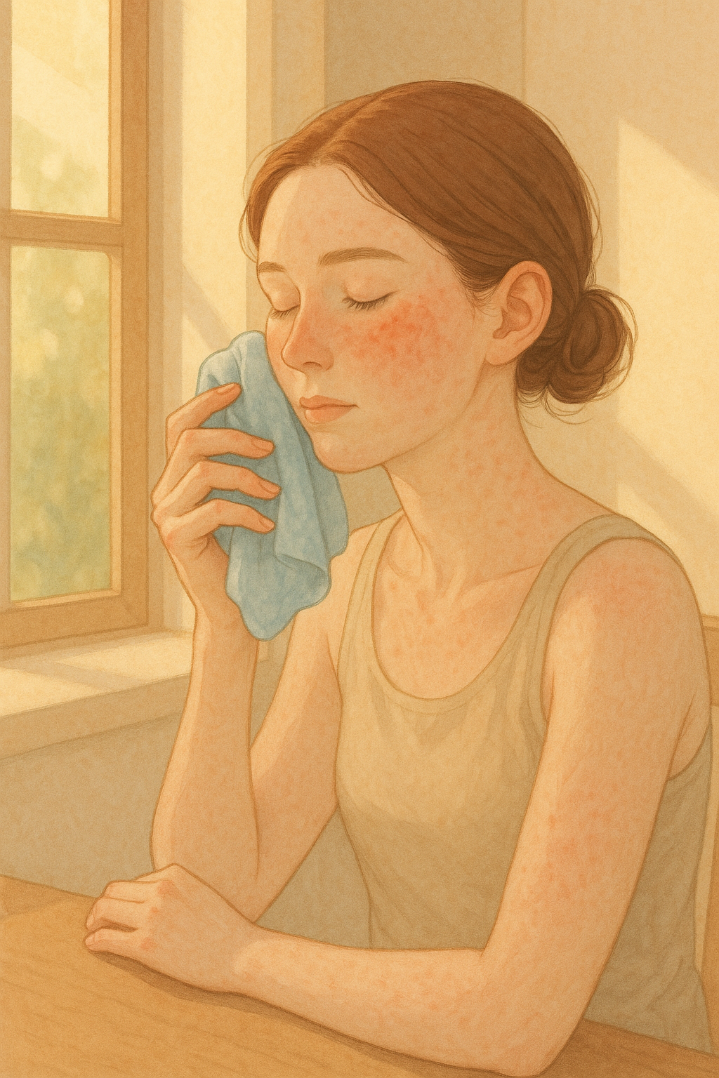 - 시원한 쿨링 로션이나 진정 크림을 이용해 가려움을 완화합니다.
